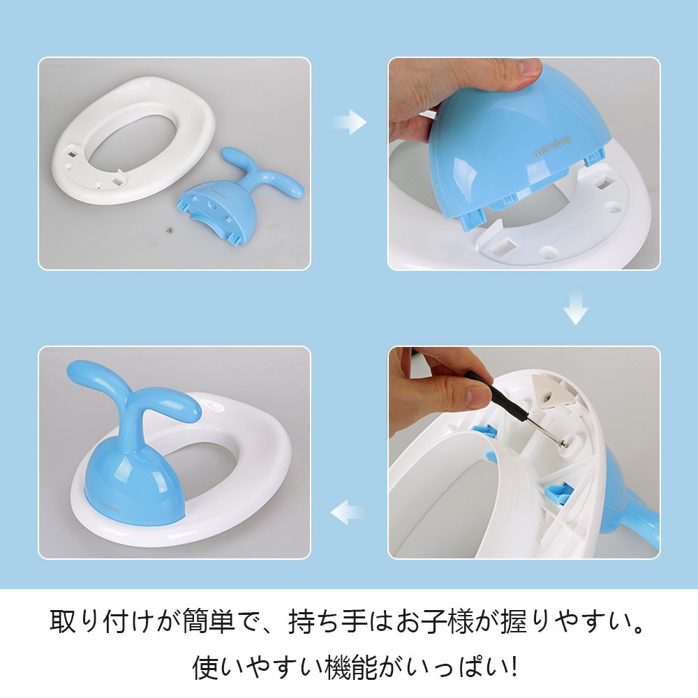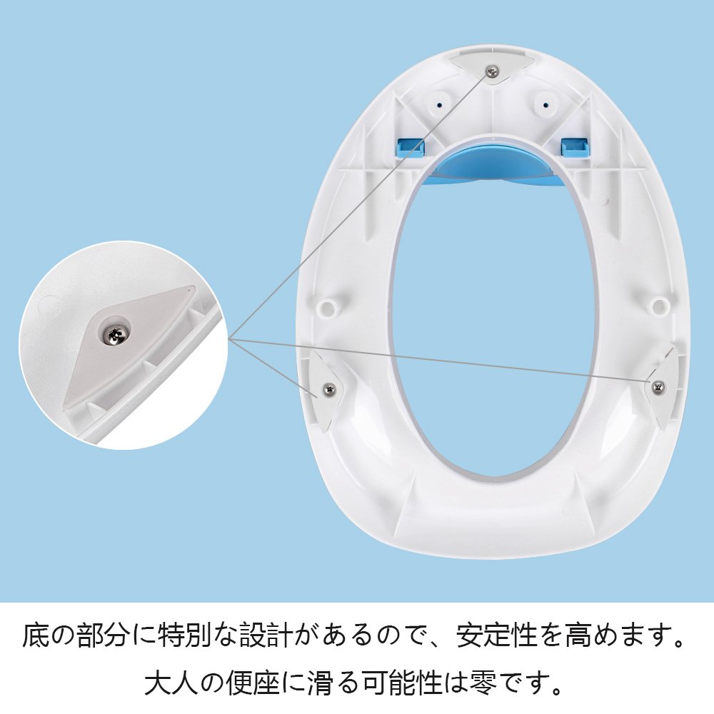 Children's assistance toilet seat is based on ergonomics, it is maintained to stay firmly with two kinds of non-slip cushion.