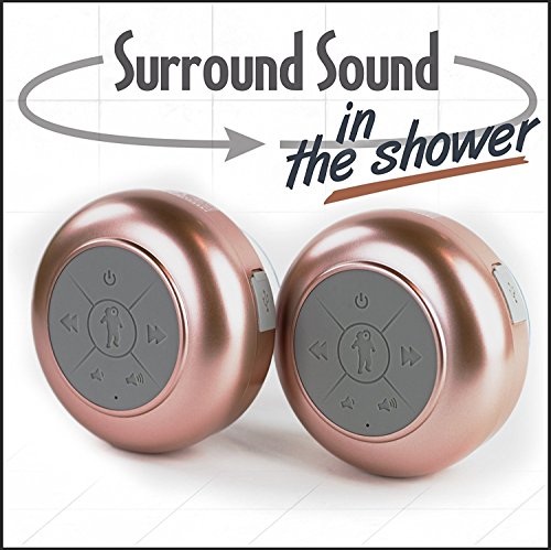 FRESHeTECH Wasserdichte Bluetooth Duschlautsprecher Splash Tunes Pro Dual - 2 Portable, HandsFree, Wireless, Wasserdicht, Duschlautsprecher mit eingebautem Mikrofon und Saugnapf, R