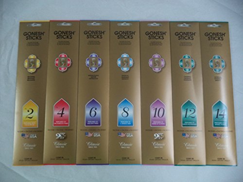 Gonesh 2 4 6 8 10 12 14 Incense Sampler 20 Sticks X 7 Packs (140 Stick)