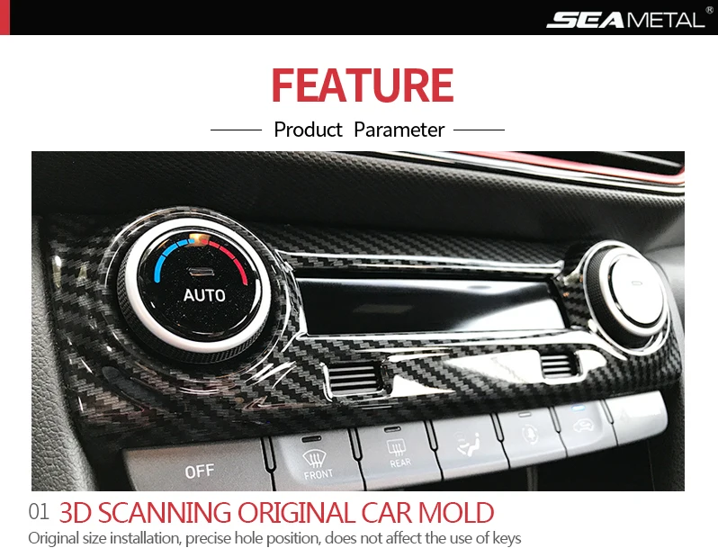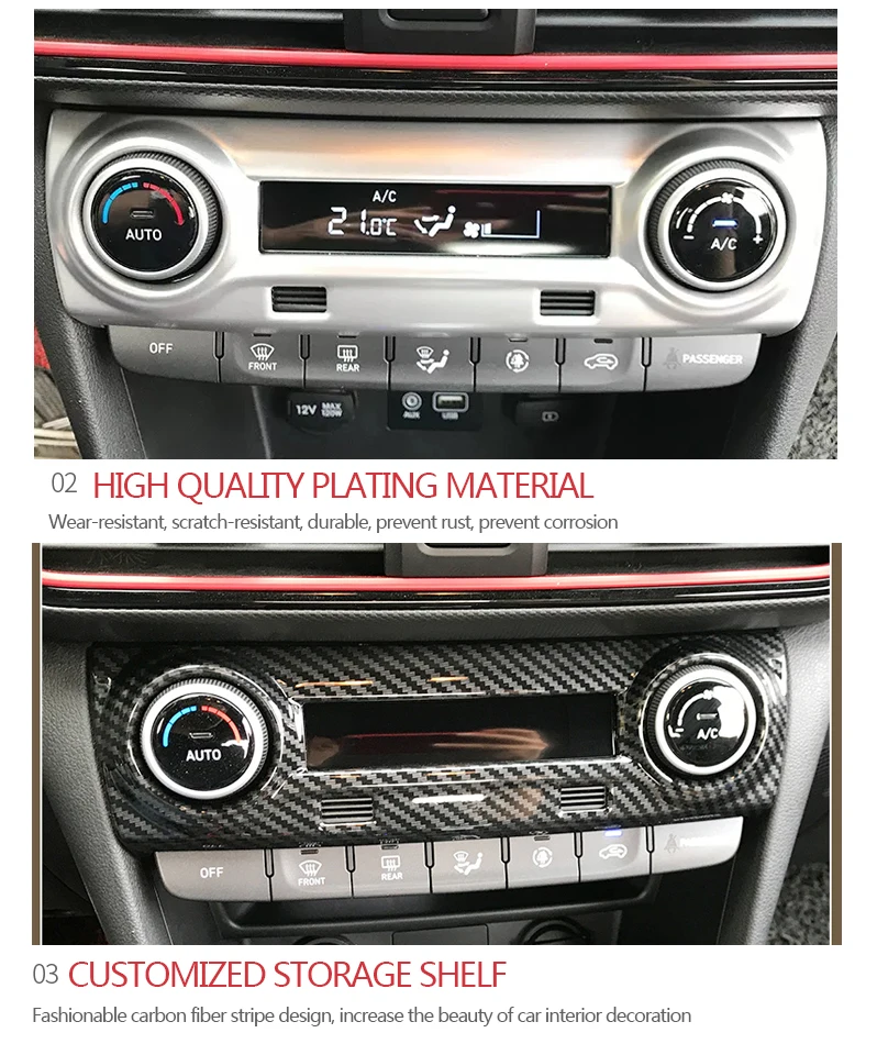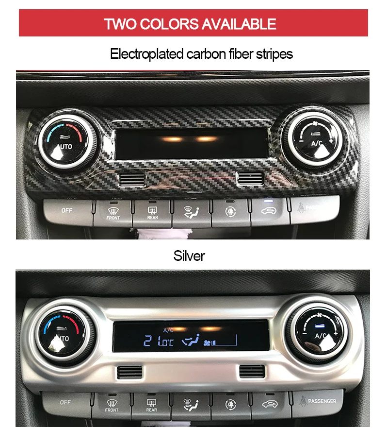 Car Air Conditioning Buttons Cover Color:Carbon Fiber Black/ Silver