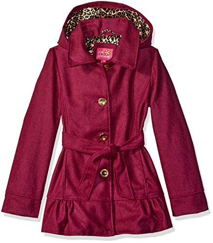 Pink Platinum girls belted wool coat lined with a cheetah print