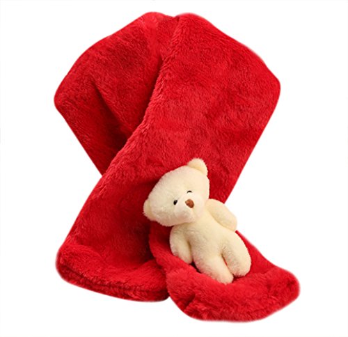 Material: Soft plush Size: 31.5x5.5in (LxW) Color: Red, Pink White. With high quality fabric, it will keep your kids warm in cold weather. Cute bear doll design makes your child more unique. A Fashion scarf as well as a useful winter accessory.