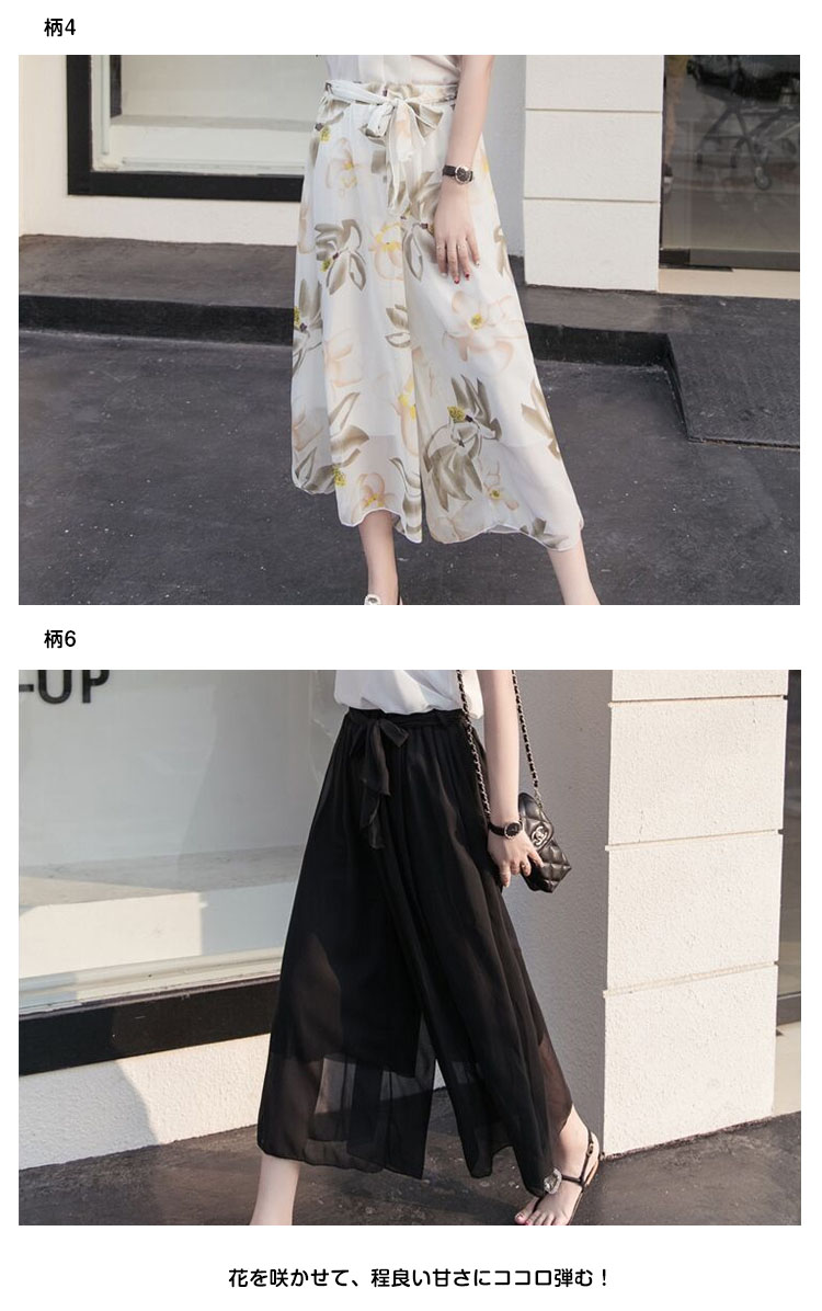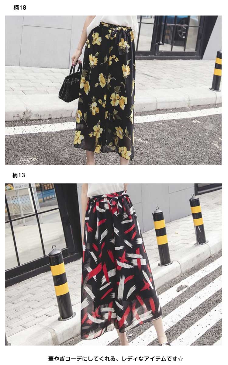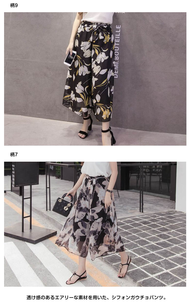 | 花を咲かせて、程良い甘さにココロ弾む!透け感のあるエアリーな素材を用いた、シフォンガウチョパンツ。水彩画の様なレトロなフラワープリントで、大人の可愛らしさを表現しました。歩く度にふわっと広がる美しいシルエットに魅了♪裏地を付けて透ける心配もなし、華やぎコーデにしてくれる、レディなアイテムです☆ | |