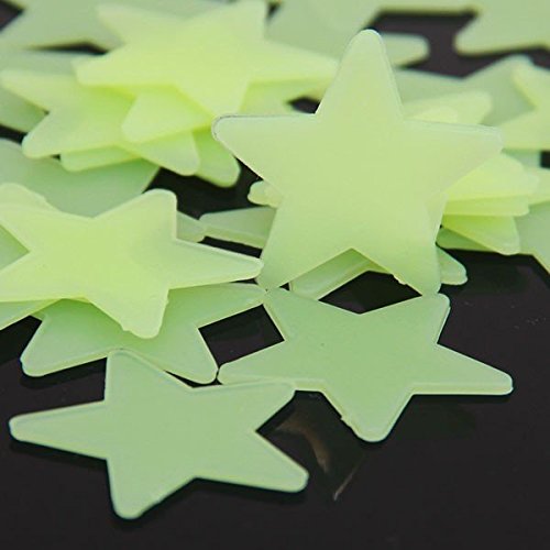 -. Feature : ComP.R.Ises of individual stickers / It adsorbs light and glows in the darkness / Material: Plastic / Size:Approx 2.5x3.2x0.1cm(LxWxT) / Great decoration for bedrooms, nursery rooms, kid's room etc