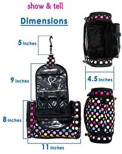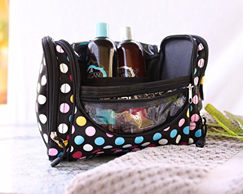 Cosmetic Bag - MakeUp Organizer - Lightweight Hanging Toiletry Travel Bag with Multiple Compartments in Polka Dot, Durable, Stylish & Fun