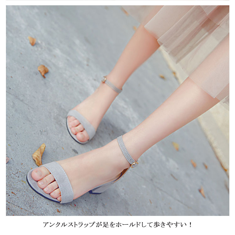 | 踵が露出しない!履くだけで脚がキレイに見える細ストラップ美脚サンダル。甲の露出が増え、長脚効果が抜群!履きやすい、歩きやすい約5.5cm太めヒール。アンクルストラップが足をホールドして歩きやすい!デイリーはもちろん、リゾートにも活躍してくれそうな予感。シンプルでどんなコーデにも合うから毎日で使いたい一足。 | |