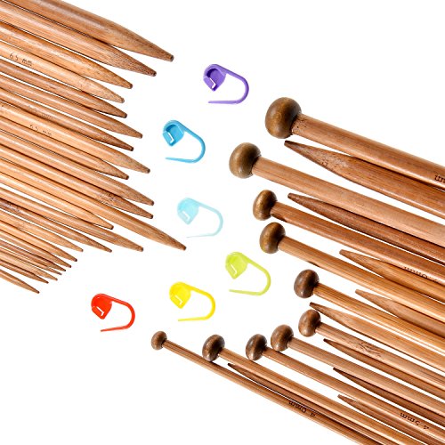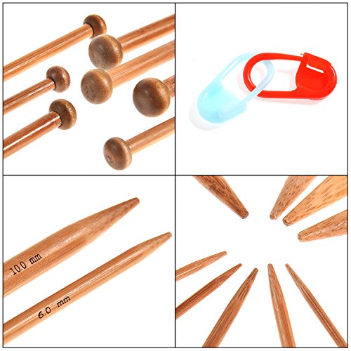 TecUnite Carbonized Smooth Bamboo Knitting Needles Set Including Double Pointed and Single Pointed and Stitch Markers Knitting Stitch Counter