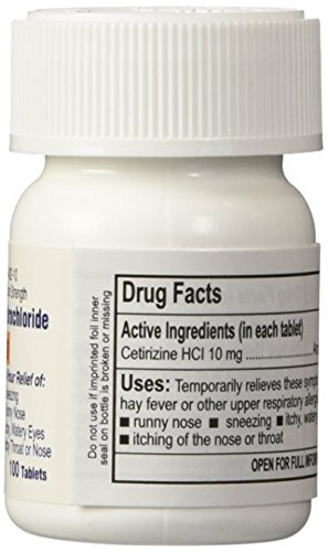 Title : Cetirizine 10 mg Antihistamine Tablets Generic for Zyrtec 24 Hour Allergy Tablets 100 Tablets per Bottle Pack of 2 Total 200 Tablets