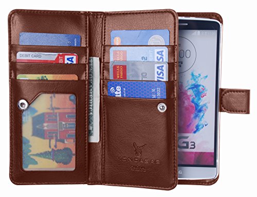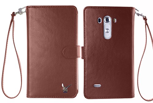 - Title : Luxury [Dual Wallet] [Wristlet] Cow Leather [7 Card Slot] [Standing] Book Wallet Flip Case Cover for LG G3 (Brown)