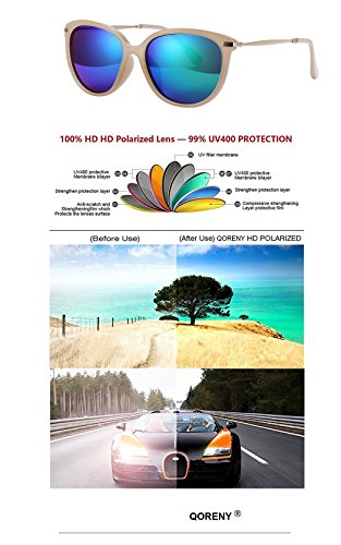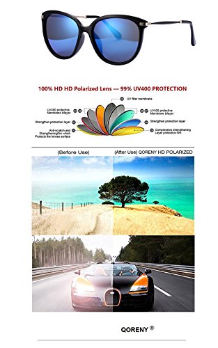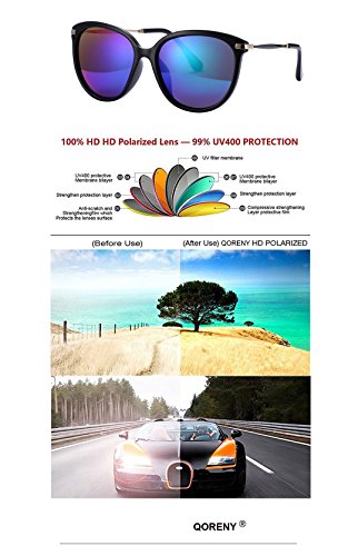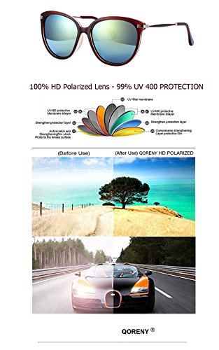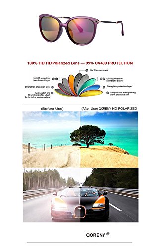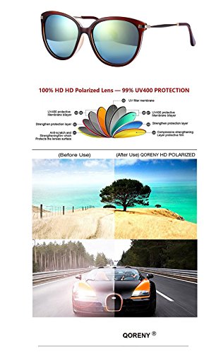Product Description QORENY® is the only official Seller, Please choose unique QORENY seller! Other sellers are inferior Sunglasses! If you receive the Sunglasses that is not the QORENY brand, please complaint to the Amazon, and you will get a full refund! Color your world and complement your look with perfect glare free vision. This is a nice polarized sunglasses for women. The round shaped fashion lenses provide 100% UV protection and the polarised lenses block 99% of reflected light for enhanced vision. The gradient color increase the fashion of the sunglasses. ?QORENY is one of the leading designing and sales company of eyewear. By innovation and creation, we own advanced producing technology and quality control methods, specializing in producing Sunglasses, Sports Eyewear, and Optical Frames. ?QORENY offers trendy eyewear styles with qualities and designs surpassing similar mainstream product. Please be aware that colors might look slightly different in person due to camera quality and monitor settings. ?HERE'S WHAT YOU WILL GET 1*Sunglasses 1*Gift Box 1*Leather Case 1*Sunglasses Pouch 1*Cleaning Cloth Design From Italy Color of lens: Gradient colors . Frame Material: High quality PC Aluminum alloy Lens 100% UV protection lens. Weight:The Sunglasses only 20g, You can hardly feel them on your face, but they are unbreakable. ? CLEANING AND MAINTENANCE To clean your sunglasses, use water and soap avoiding all types of solvents or alcohol. Do not use dirty or abrasive cloths which could alter the features of their filters. Use only original accessories and spare parts. ? PRESERVATION Keep in the cloth or hard case in a dry place at a temperature between -10 Degrees Celsius and 35 Degrees Celsius. ?100% Satisfaction Guarantee. Try risk free. ADD TO CART RIGHT NOW!