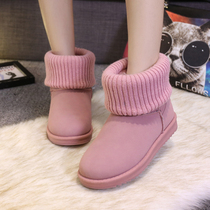 冬季短筒女靴毛线雪地靴女平底磨砂皮真皮平跟单靴加绒保暖棉鞋子