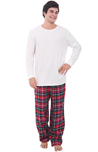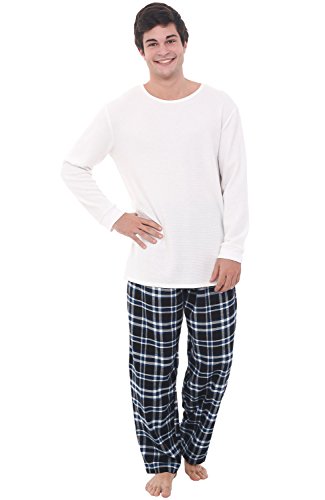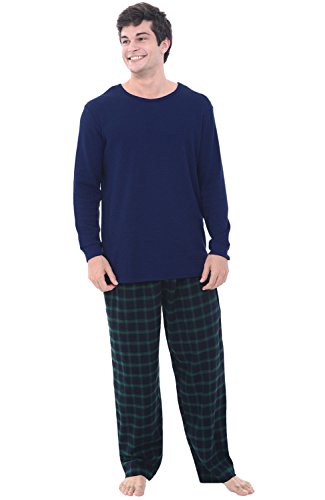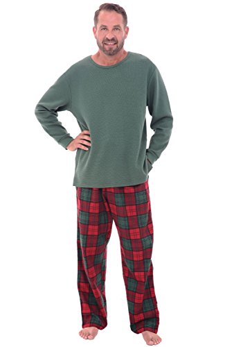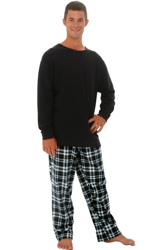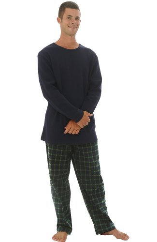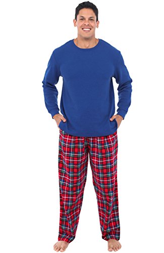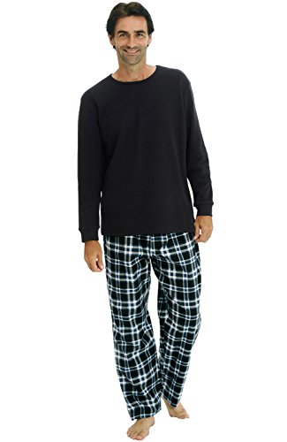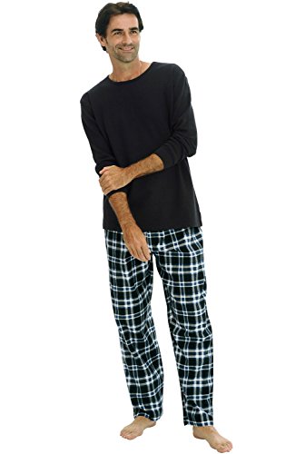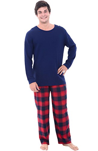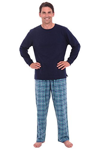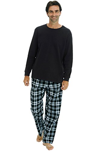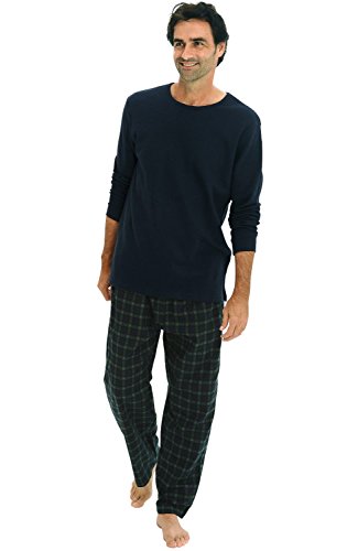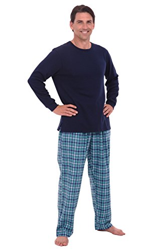 | Del Rossa Men's Long Pajama Set - Knit Top with 100% Cotton Flannel Sleep Pants |