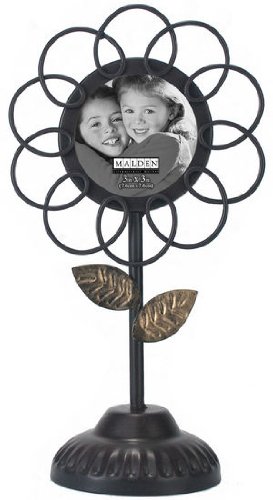 -. Title : Malden International Designs Ironworks Metal Flower Pedestal Bronze with Gold Accents Picture Frame, 3x3, Bronze