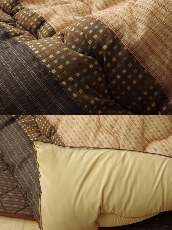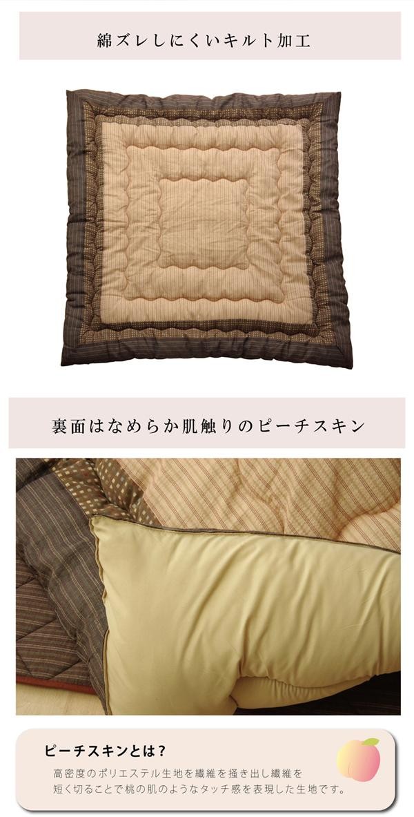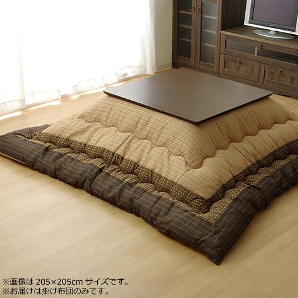 fk094igrjsしじら織のこたつ布団です サイズ 約205×285cm 個装サイズ:65×60×25cm 重量 個装重量:5100g 素材・材質 表地:綿100%(しじら) 裏地:ポリエステル100% 中材:ポリエステル100% 仕様 手洗い可 80~90×135~150cm幅のこたつ台に適応 生産国 日本(側地:中国、最終加工:日本) 和室にも洋室にも合うデザイン しじら織のこたつ布団です