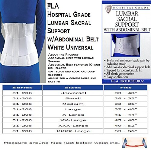 -. Title : FLA 10" Lumbar Sacral Back Support with Abdominal Belt #31208 - Universal White