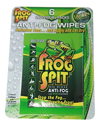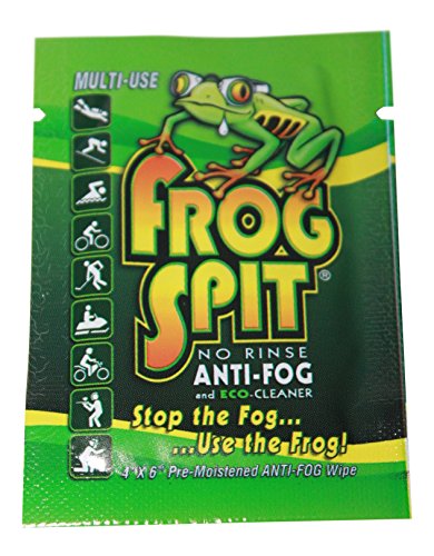 Frog Spit anti- fog wipes are ideal for anyone looking for an easy, effective, and convenient solution to fogging. Just remove the pre moistened wipe from the pouch and lightly apply a thin layer solution which will dry clear in just seconds. Each wipe contains enough Frog Spit solution for multiple applications.