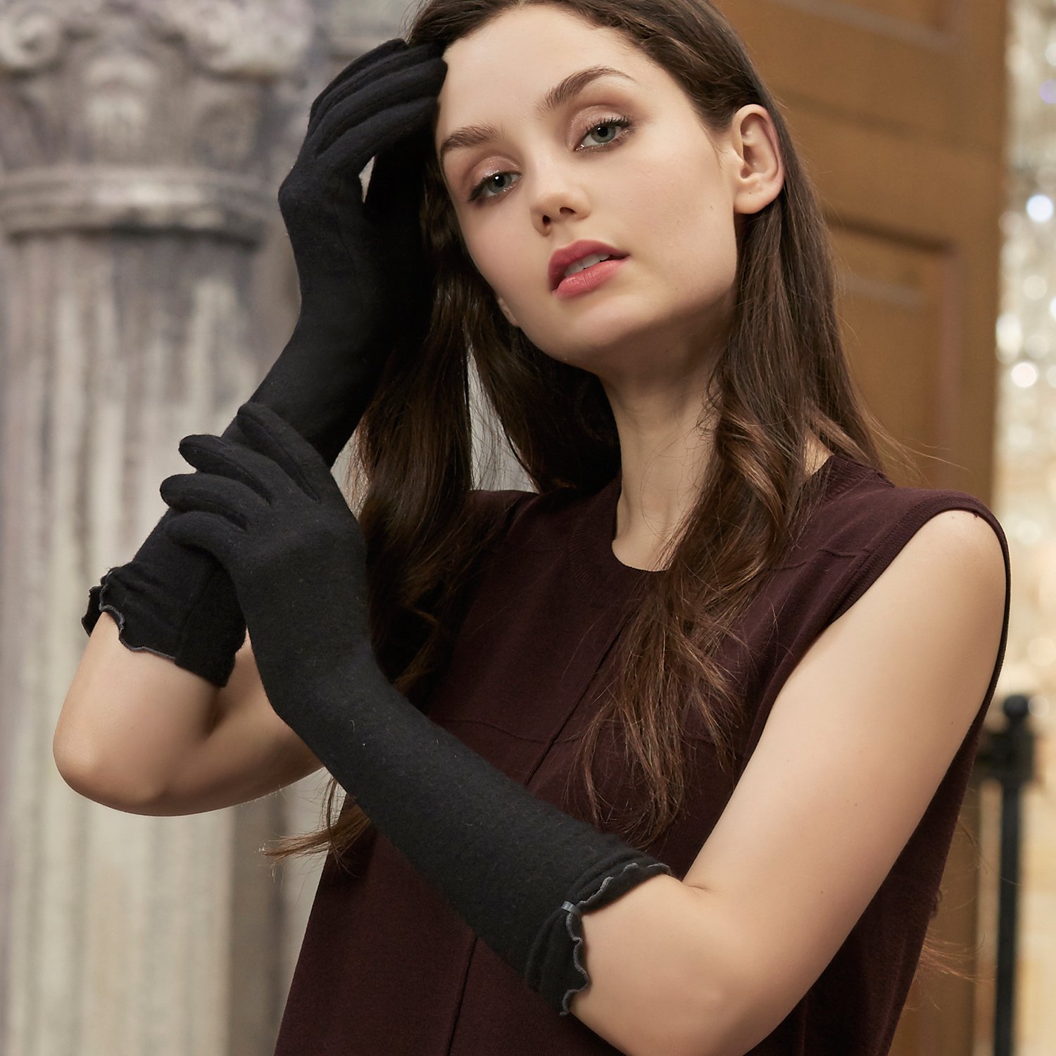 It is soft gentle wool long wear gloves that is soft and soft, soft and soft.