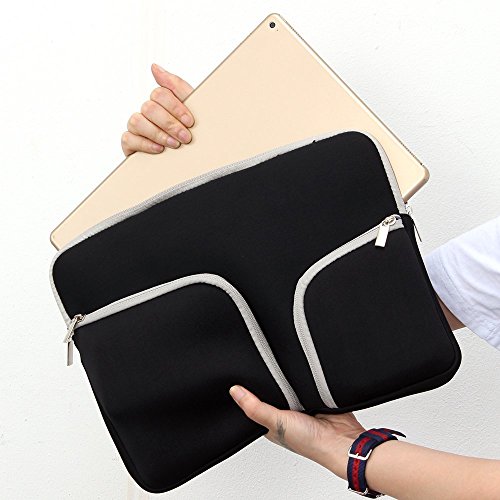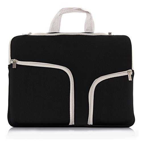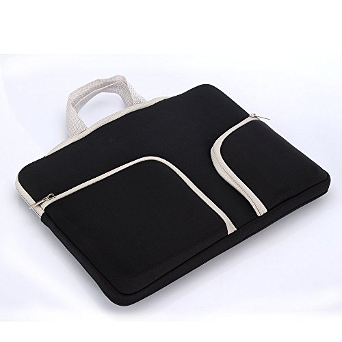 -. Feature : Suitable for 11.6 /13.3 /15.4 inch MacBook and other laptops / Soft and durable neoprene material protects your device from bumps, scratches, and dents / Extra two pockets are convenient to put your power adapter, mouse, cable and other accessories / Slim and lightweight; Briefcase with qualified handle does not bulk your laptop up and can easily slide into your laptop computer, briefcase, backpack or other bag / Top-loading zipper on the sleeve glides smoothly and allows convenient access to your laptop computer