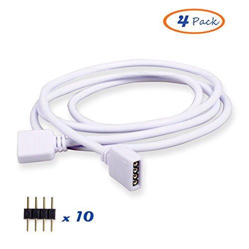 Besmelody 4-Pack 3ft 4 Pin LED RGB Extension Cable Wire for SMD 5050 3528 LED Strip Lights with 10pcs 4-pin Male Connector