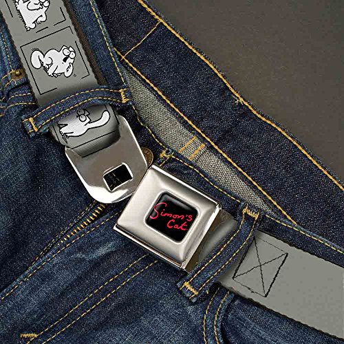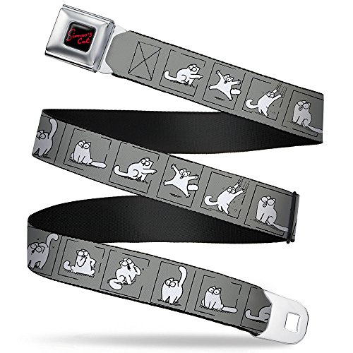 (Buckle Down)/Accessories/Belts Buckles/DIRECT FROM USA/Simon's Cat Seatbelt Belt - Simon's Cat Pose Blocks Gray/Black/White
