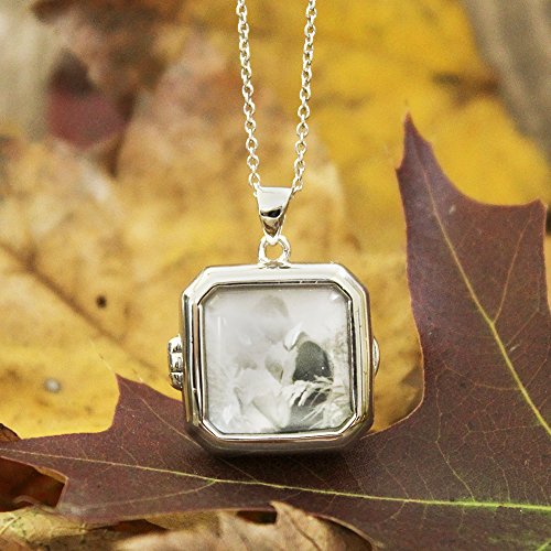 The Billie glass locket is shaped as an edgy square. This photo locket is outlined in sterling silver and can hold up to two of your favorite photos. Each time you glance at your favorite photo through this glass locket, you'll know love is close. Aunt Billie is our founder Troy's aunt and the Inspiration behind the Billie sterling silver glass locket. She is an aunt who always seemed to be there for you, whenever you needed a caring person to talk to. Aunts are the big sisters you never had, the friend who is also a family member, the grown up who can still act like a kid and Aunt Billie is all those things and more. The Billie is simple in its design, yet like the silence in music, this locket's simplicity is its beauty. The same holds true for Aunt Billie. Go back in time to a simpler place by putting a black and white photo of your favorite person inside and see just how quickly simple can become elegant. Includes Glass and Sterling Silver locket pendant and sterling silver cable chain. Available in chain lengths from 18" to 36". Our 18" through 34" necklace chains come standard with a 2" jump ring which may be used to shorten the chain by 2" and allows two length options.Feature
