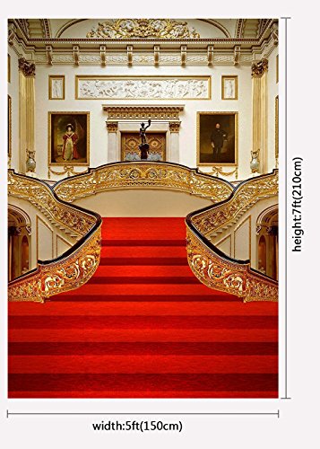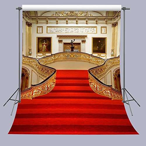 FUERMOR 5x7ft Golden Hall Red Carpet Backdrop Wedding Party Events Photography Props Room Mural Photo Background RQ012