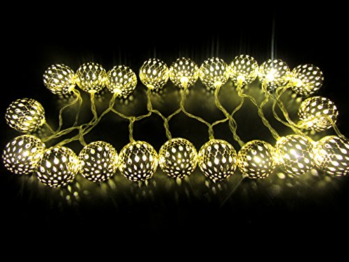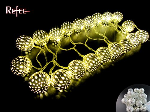 Refee Moroccan Ball Shape 20 LEDs Decorative Light Strings for Outdoor Party , Christmas, Wedding and Home garden etc. (Warm white)