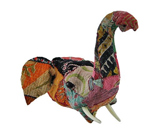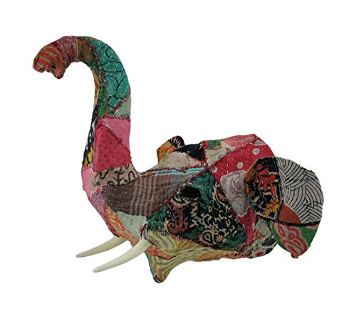 Paper Mache Wall Sculptures Recycled 15 Inch Fabric Covered Trunk Up Elephant Head Wall Mount Bust 18 X 15 X 14 Inches Multicolored