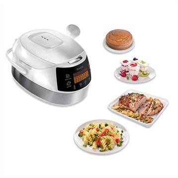 -. Feature : 17 programmierte Rezepte / Fassungsvermögen: 5 l / Maße: 37 x 37 x 22 cm / Gewicht: 4,12 kg / Handlich und leistungsstark / Kochen, Frittieren, Braten, Backen, Nudeln, Eintöpfe, Pizza, Joghurt, Dessert, Dampfgaren, Porrdige, Reis / Herausnehmbarer Kochbehälter / Antihaftbeschichtung / Verzögerter Beginn des Kochvorgangs möglich / 5 l / Zubehör: Messbecher, Dampfkorb, Spachtel und Löffel / Herstellergarantie: 1 Jahr