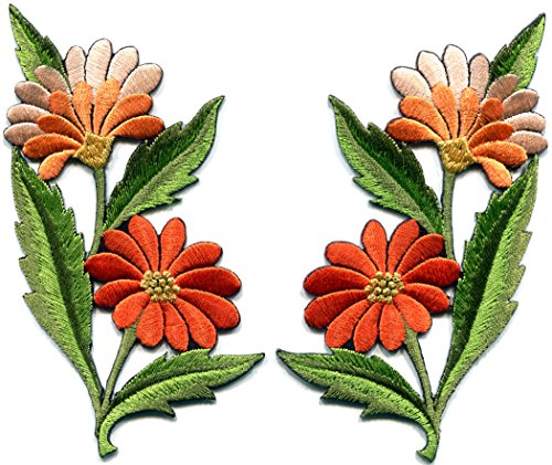 -. Title : Orange peach daisies pair flowers floral bouquet boho embroidered appliques iron-on patches new