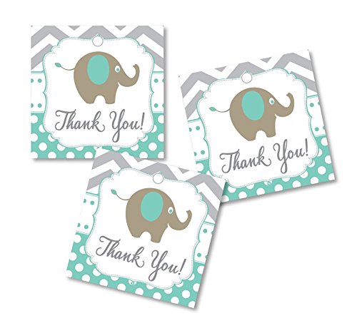 Thank You Elephant Favor Tags - Mint - Baby Shower - Birthday Party - Any Occasion (Set of 50)