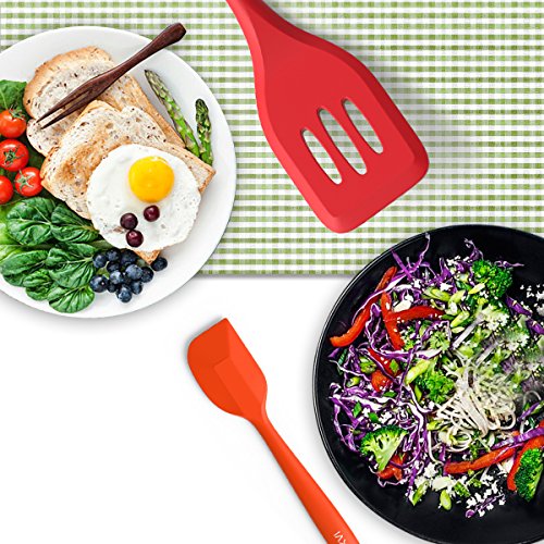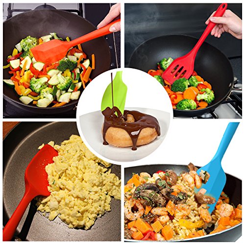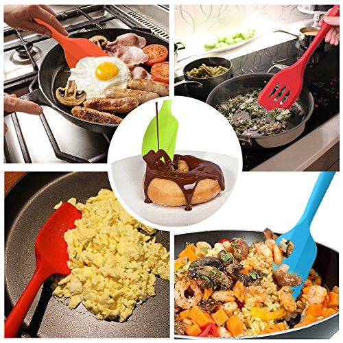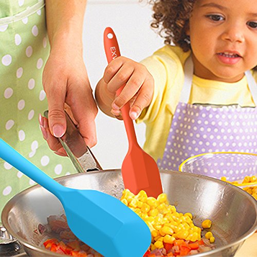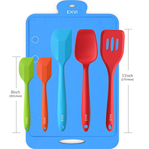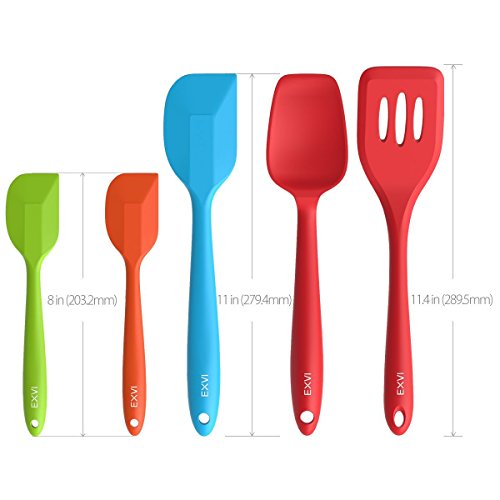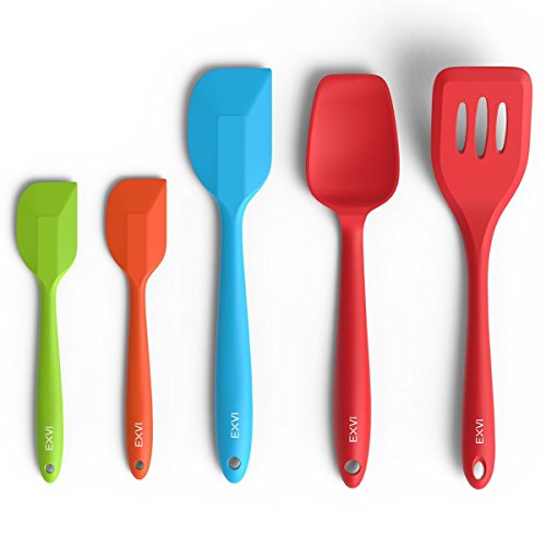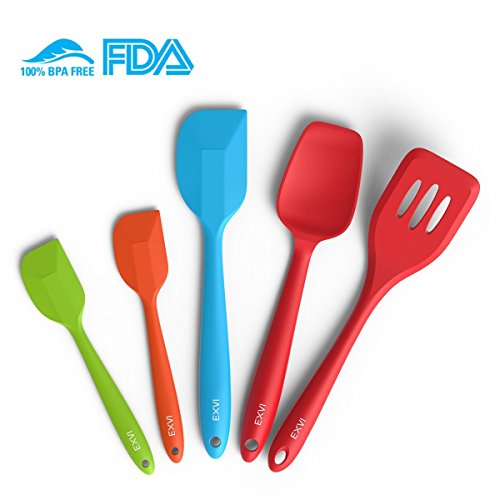 Studio : EXVI Publisher : EXVI Product Description Product Description Color: Red Blue Orange Green ATTENTION: Color May Look Different BEFORE Removing Plastic Vacuum Packaging!!! The Secret To Choosing the Perfect Silicone Spatula Set is Innovative Design Quality Materials. Silicone's are safe, made from silicon found in common sand and oxygen molecules,excellent insulator; it can tolerate a huge range of temperatures. Each of our utensils is designed to meet the needs of chefs and bakers and manufactured to the highest standards using only the best materials. Special Design: √Hygienic: Solid silicone surface on these kitchen utensils means no crevices for bacteria to grow √100% FDA Grade, BPA Free Silicone coated cooking utensil set √Perfectly shaped heads: perfect for all those hard to reach places √Ergonomically designed silicone coat √Non-stick cooking utensils: Won't scratch pots and pans √Dishwasher safe kitchen tools √HEAT RESISTANT (UP TO 600°F) Our Silicone appliances kit contains: 1 x 11.4 inch (289.5mm)Silicone Spatula:Fried in cooking to remove excess oil and water(Red) 1 x 11 inch (279.4mm)Silicone Spoon: For mixing, scooping, and tasting(Red) 1 x 11 inch (279.4mm) Silicone scraper: For scraping bowls and pans(Blue) 2 x 8 inch (203.2mm) Silicone Spatula: For mixing, scooping, and tasting(Orange and Green) Lifetime Guarantee against defects in materials or workmanship. Click the Add to Cart Button at the Top of this Page to Order Your Set Now 0