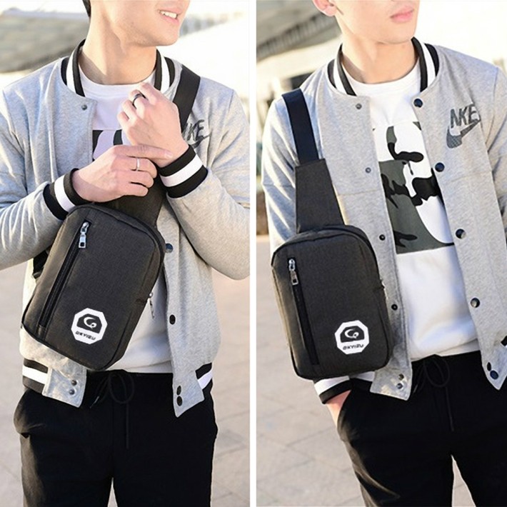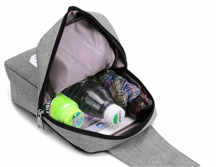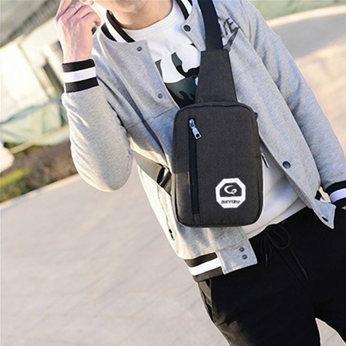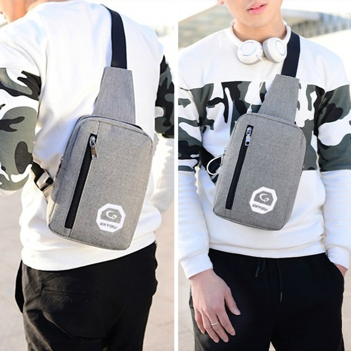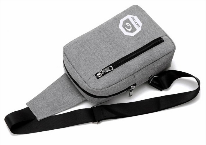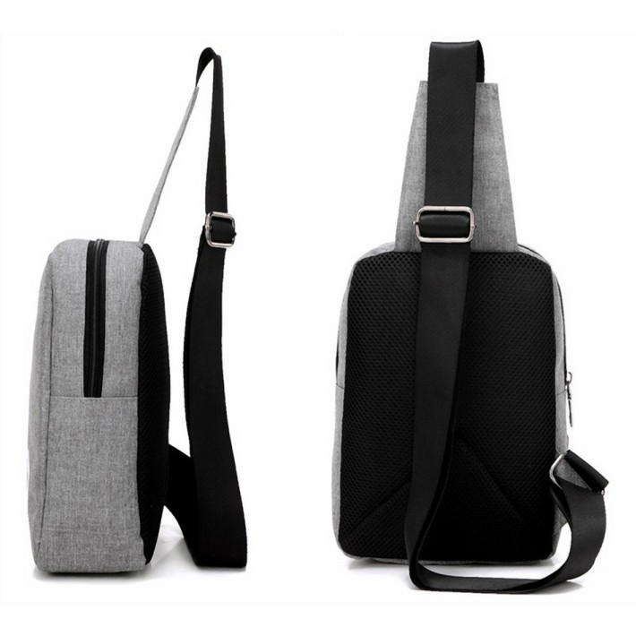 ボディバッグ ワンショルダー 斜め掛け 縦型 大容量 軽量 通気性 イヤホンコード グレー