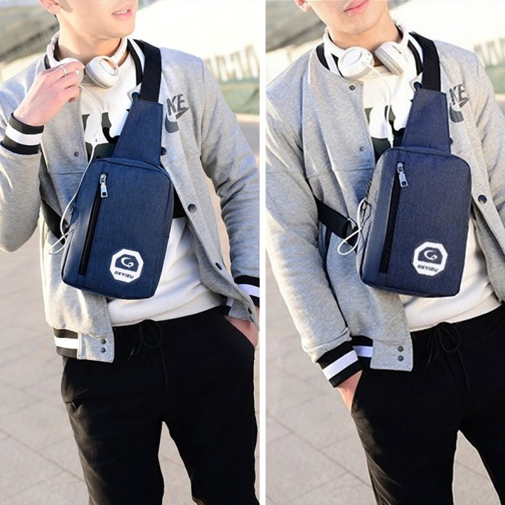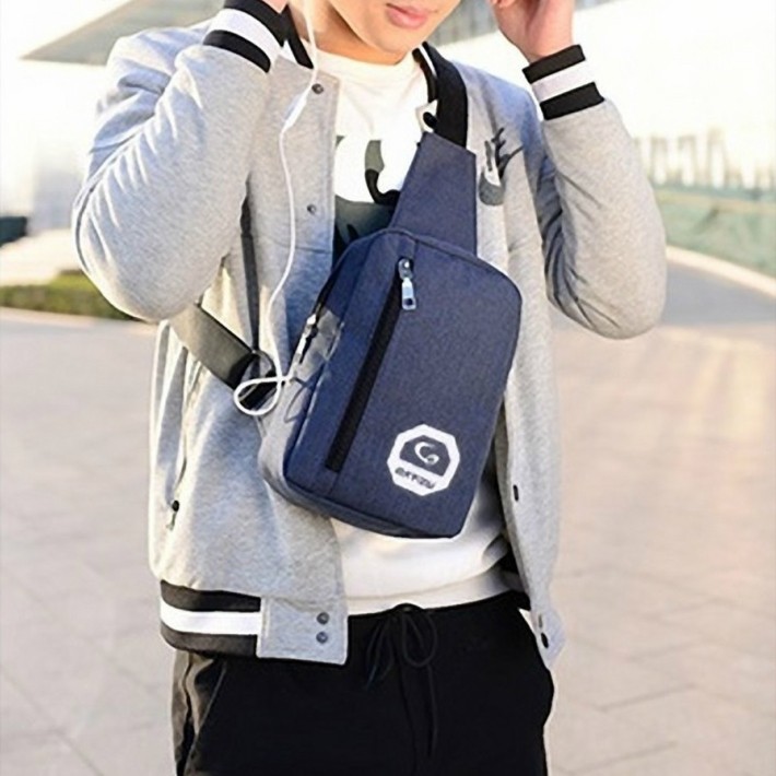 ボディバッグ ワンショルダー 斜め掛け 縦型 大容量 軽量 通気性 イヤホンコード ブルー