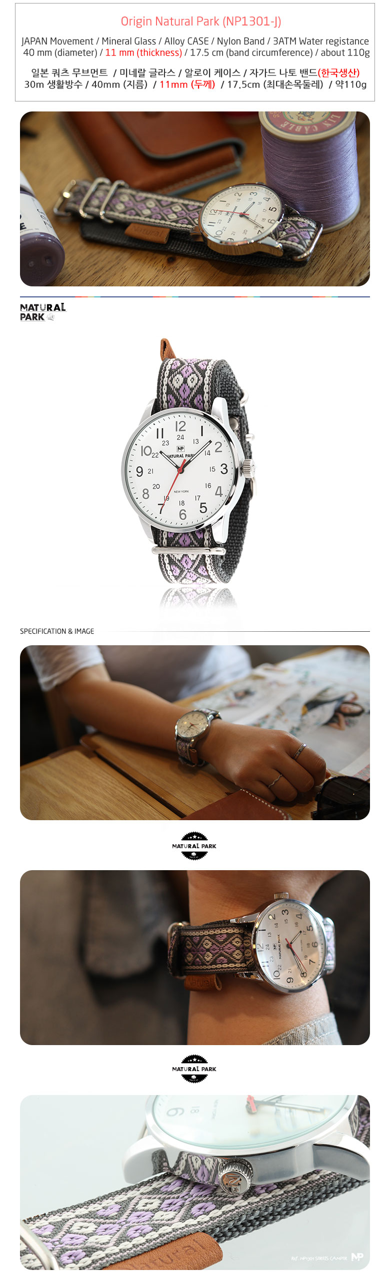 • 사이즈 40mm(지름),11mm(두께),17.5cm(최대손목둘레)