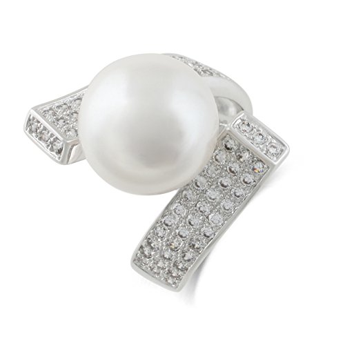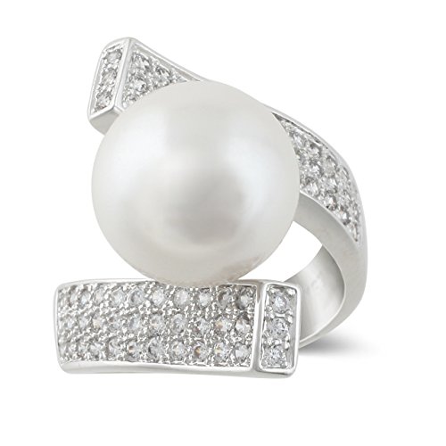 -. Title : JanKuo Jewelry Rhodium Plated Simulated Pearl Cubic Zirconia Pave Cocktail Ring