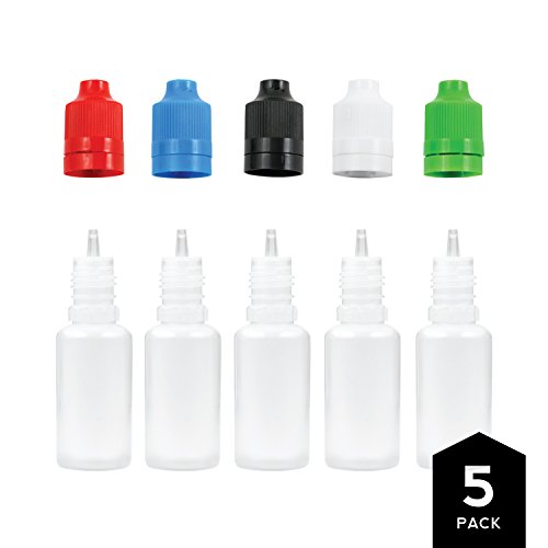15ml PE Unicorn Pen Plastic Bottle with Child Resistant Tamper Evident Cap (5 Pack) Multicolor, Black Blue Green Red White