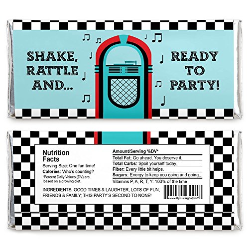 - 50's Sock Hop - Candy Bar Wrapper 1950s Rock N Roll Party Favors - Set of 24 wrappers & foils (Candy bars not included)