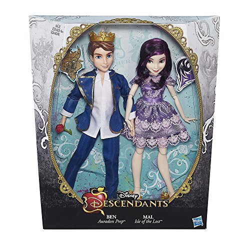 Set off on a journey with the teenage descendants of Disney heroes and villains as they choose their own paths and forge new friendships. This Disney Descendants 2-pack includes a set of fashion dolls: love interests Ben of Auradon (son of Belle and King Beast) and Mal, of Isle of the Lost (the daughter of Maleficent). The dolls feature outfits inspired by their final dance at the Coronation Ball as seen in Disney's Descendants. Mal Isle of the Lost comes in a gorgeous short coronation dress and matching heels and is accompanied by the handsome soon-to-be king, Ben of Auradon.