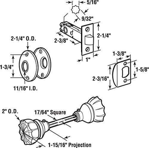 This vintage style glass door knob set is constructed of clear fluted glass and brass plated materials. This knob set is designed for indoor use only, and it fits door panels from 1 in. to 1-3/4 in. thick. The diecast base on these knobs include the set screws for fastening the knobs to the 17/64 in. x 3-1/2 in. square steel spindle with 3/8 in. -20 threads. Note: This passage door set cannot be used on pre-bored doors that have large newer style door knob holes without first prepping them to receive this hardware. *Installation tip #1: Because the fasteners of the rosettes require a solid surface to mount to, the large 2-1/8 in. (approximate size) holes must first be filled with a hardening filler, to then be able to receive the rosette fasteners. Products like Fix-It-All and Bondo Body Filler have worked well for some, but care must be used to avoid damaging any prefinished door surfaces during application and finishing. *Installation tip #2: Apply a small amount of Loctite ThreadLocker 271 to the set screw threads in the event they are loosening – Loctite purchased separately.Feature