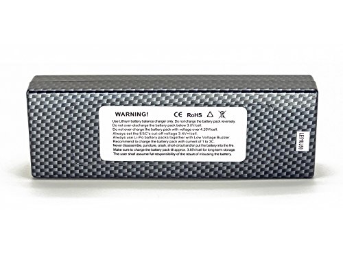 True Capacity and C-Rating Thick 12AWG Discharge Leads Durable Hard Case Traxxas High Current Style Connector JST-XH Balance connector Capacity: 5500mAh Voltage: 2S /?2 Cell / 7.4v Discharge Rate: 90C Constant (495A) / 180C Burst (10 sec) (990A) Charge Rate: 5C max (27.5A), 1C recommended (5.5A) Watt Hours: 40.70Wh Weight w/ Wiring: 9.5oz / 269.32g Dimensions LxWxH: 137.9 x 46.5 x 24.8 mm Dimensions w/ Wires Bent Flat LxWxH: 137.9 x 46.5 x 29.0 mm Discharge Plug: Traxxas High Current Style Connector Balance Plug: JST-XH Equipment Needed: LiPo Balance charger capable of charging 2 cell LiPo batteries, Or a LiPo charger with an External Balancer Equipment Recommended: LiPo Safe Charging Bag/Sack/Pouch, Cell Voltage Reader Safety Notes Warnings: LiPo batteries are potentially hazardous. Improper usage can cause fire or explosion. Charge and Store battery in LiPo-Safe Bag away from flammables on a concrete surface. Charge using a LiPo compatible Balance Charger ONLY! Never Charge above 4.2V per cell. Never Discharge below 3.2V per cell. Always use under adult supervision. Store the battery in a place not accessible by children or infants. Do not short the battery's positive and negative terminals. Stop use of the battery if it expands or the temperature reaches above 70° Celsius / 160° Fahrenheit. The end-user is fully responsible for any results in using this battery pack. 0 |