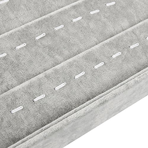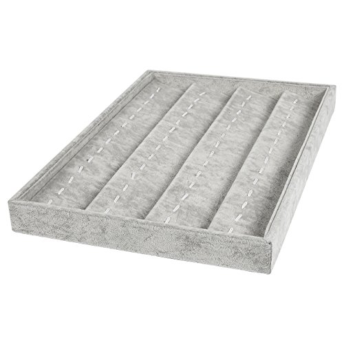 Jewelry Display Tray – Velvet Pendant Jewelry Showcase Display Organizer, Stackable Jewelry Drawer Storage Holder for Pendants and Charms, Grey, 14 x 9.5 x 1.25 Inches