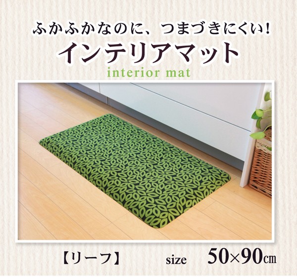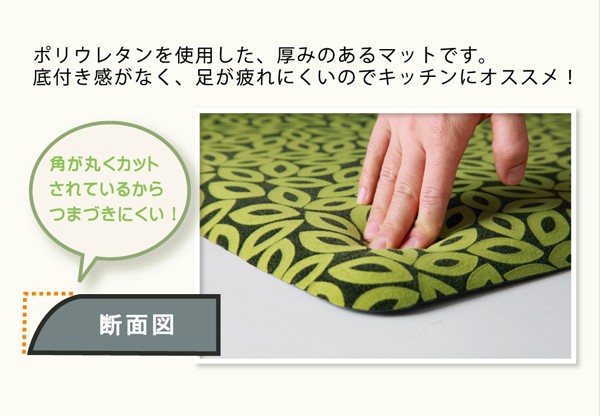 【商品名】キッチンマット つまづきにくい ポリウレタン100% 『リーフ』 約50×90cm(厚み約15mm)
