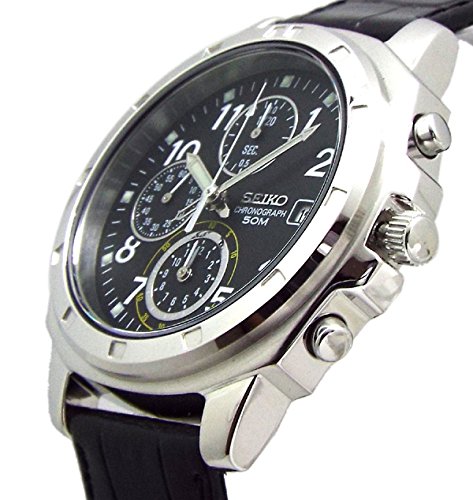 세이코import SEIKO 크로노그래프 손목시계 가죽 벨트 세트 일본 세이코 정규 유통품 블랙 SND195P1 [병행수입품]