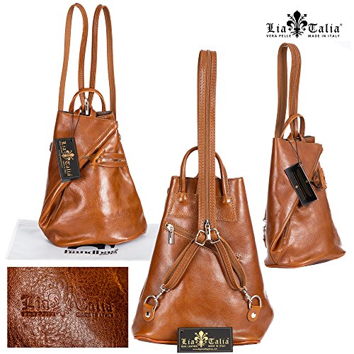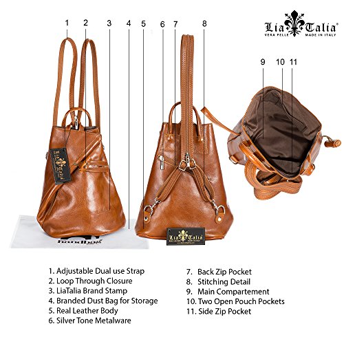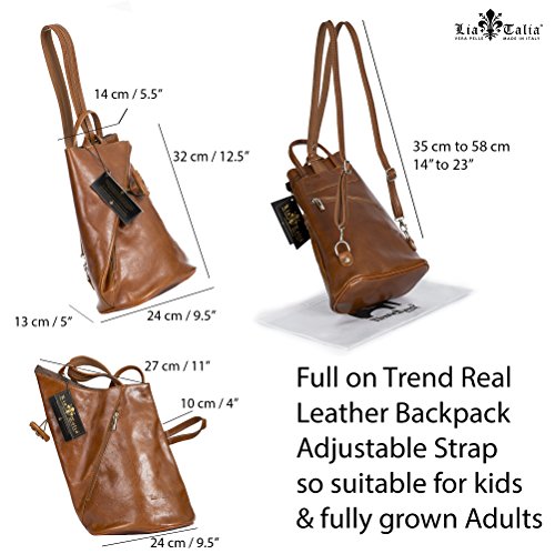 LiaTalia Branded Womens Cute Little Hand Made Genuine Real Italian Leather Backpack with a small top handle and adjustable and convertible twin straps with silver toned metal hardware Available in a standdard size and a cute little minismall size. There bags are more suitable as out and about bags to carry just some travel bits & should not be considered a full on backpackduffle bag.