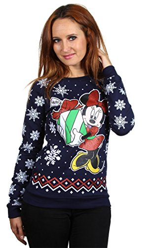 Disney Women's Plus Size Christmas Minnie Holding a Gift SweatShirt (1X, Navy Minnie)