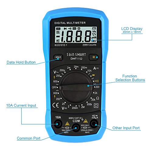 SainSmart DMT110 Digital Multimeter, Mini Portable Meter MS8233B AC / DC Voltage Current Measuring Amperemeter Ohmmeter with Diode and Continuity Test