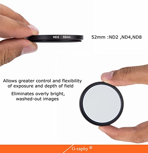Kit Includes: 52mm Neutral Density Professional Photography Filter Set ( ND2, ND4, ND8 ) + Carry Pouch
