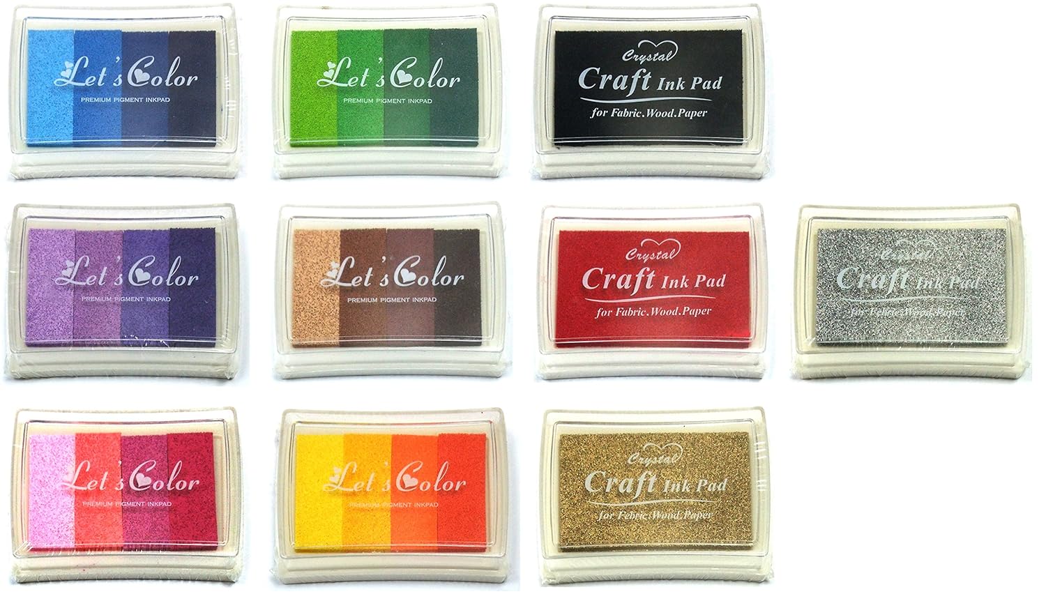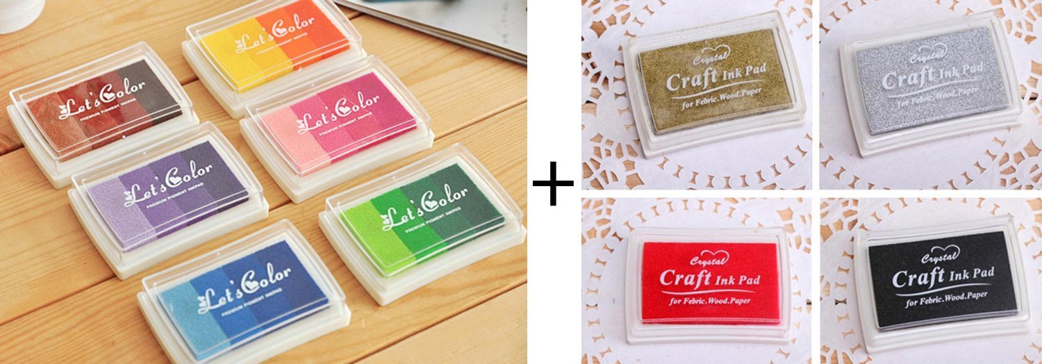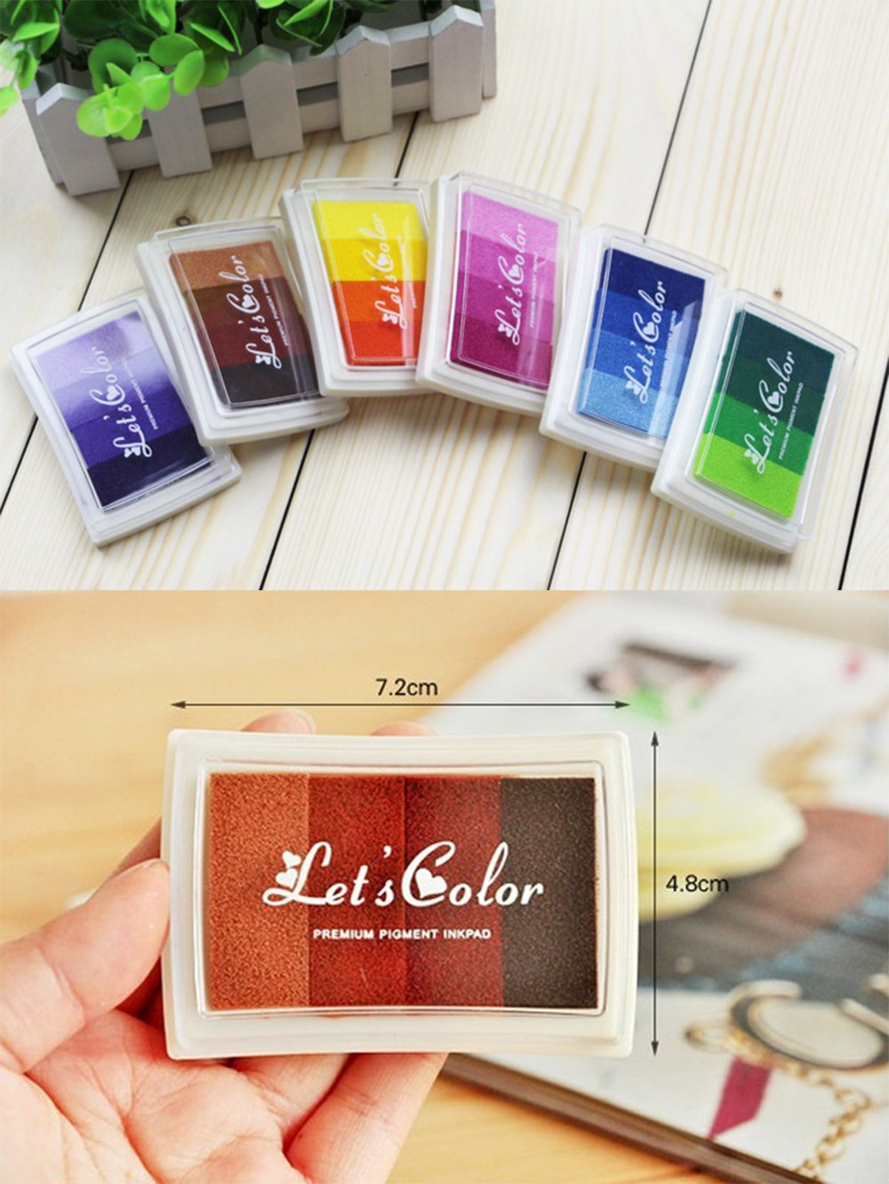・4色のグラデーション効果が楽しめるスタンプ台を6セットとベーシックカラーの黒・赤・金・銀、合計28色楽しめるスタンプ台です。