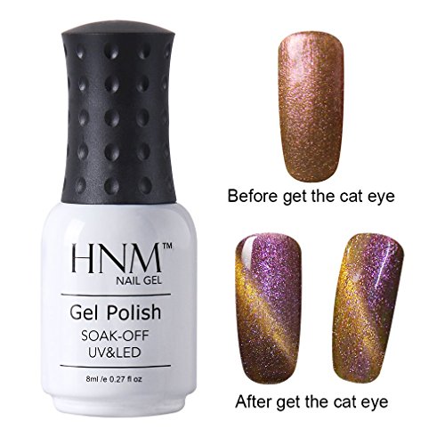 -. Feature : Brand: HNM, NON-TOXIC and Harmless Resin, High quality gel with low smell, good tenacity / Item Included: 1 X 8ml Color Gel Nail Polish / Amazing cat's eye effect and color-changing from different viewing angles / Need to cure under the UV or Led Lamp.Our gel nail polish is easy to apply just like normal color polish but much more DURABLE. Long lasting for at least 2-3 weeks.No grinding. No filing. No drying time after application.Color resistant, flexible and shiny resistant to any test. / Suitable for natural nails, UV gel nails, false nails, acrylic nails, nail tips, etc.